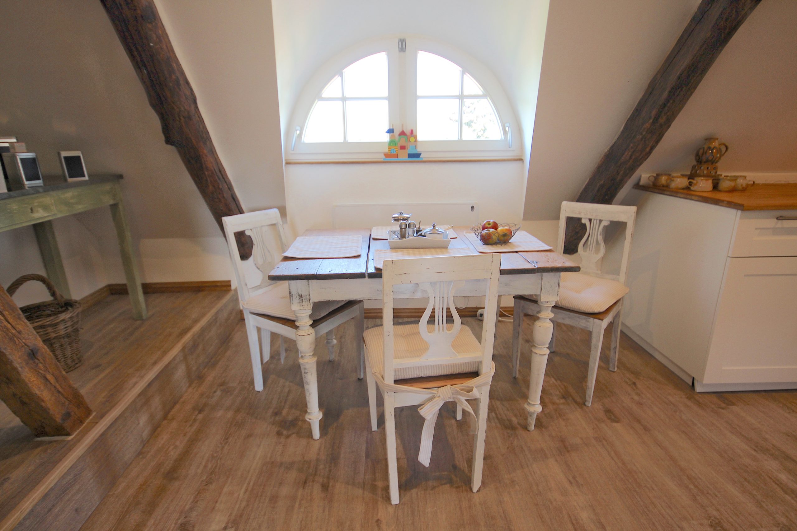 Das geräumige Wohnzimmer verfügt über eine Sitzecke, die bei Bedarf zur zusätzlichen Doppelschlafcouch umgewandelt wird, und eine Kuschelecke, die ebenfalls bequem zu einem Nickerchen genutzt werden kann. Ein großer Tisch mit Stühlen lädt ein zum gemeinsamen Spielen, Lesen, Chatten oder Fernsehen.